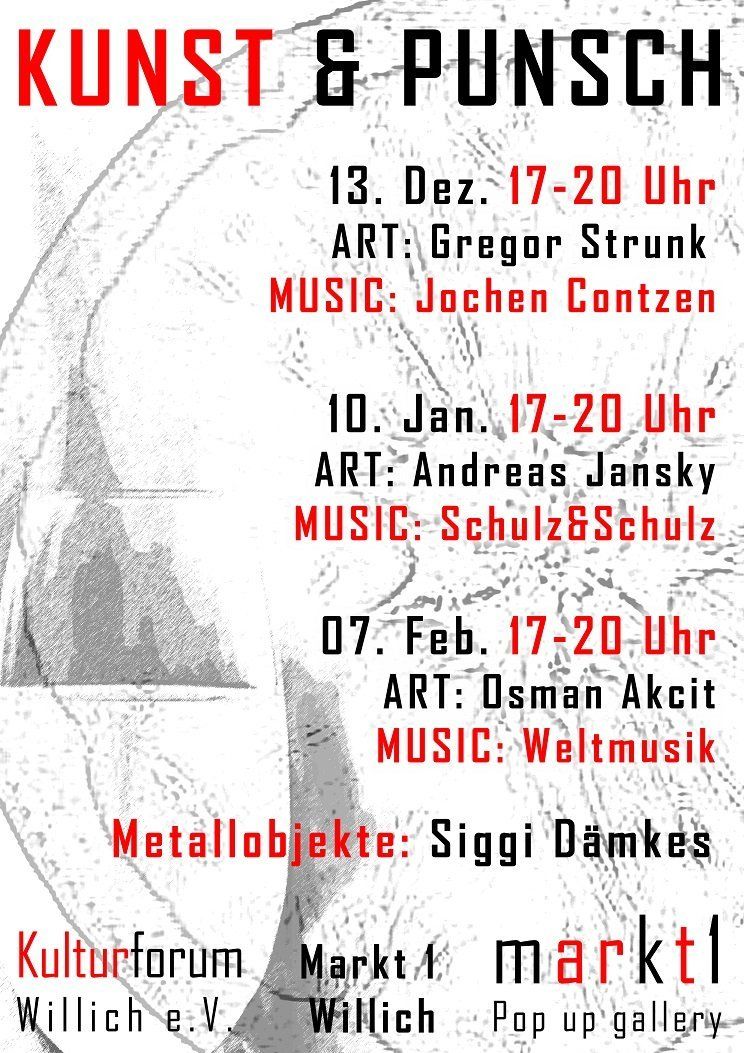kunst.punkt.willich zeigt: Beate Krempe/ Collagen: Bewegende Geschichten erzählen von Flucht und Vertreibung – Ankommen und Versöhnung · Waleed Ibrahim/ Malerei: Eine überwältigende Farbenpracht transportiert eine ernsthafte Botschaft aus dem Land der Kurden · Moumen Chamoun/ Skulptur: Kraftvoller Ausdruck, elegante Bewegungen – die Figuren spiegeln das Leid und die Sehnsüchte der Menschen aus Syrien wieder.